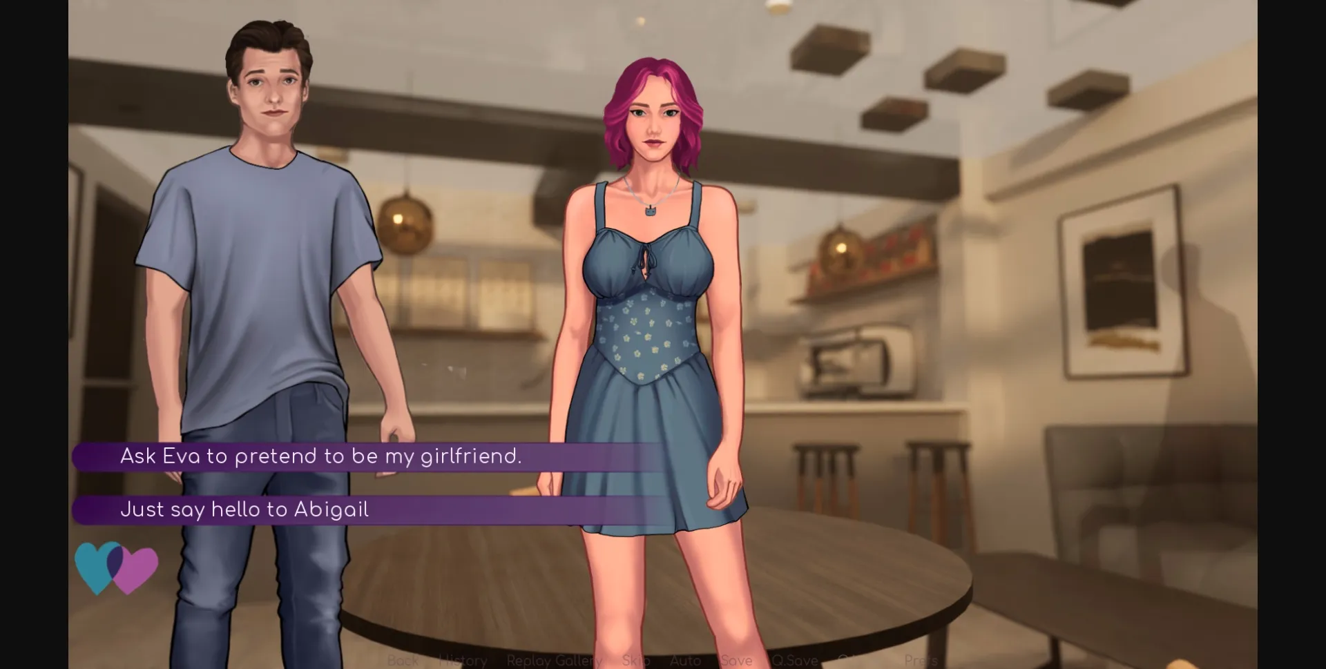 "Love scores" with characters can now be viewed in the character menu, and in the future a gallery of scenes will be placed there as well.