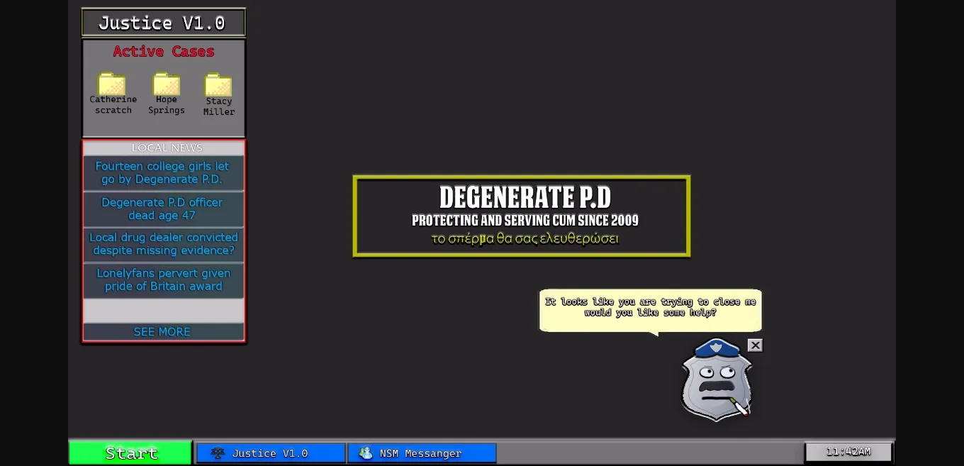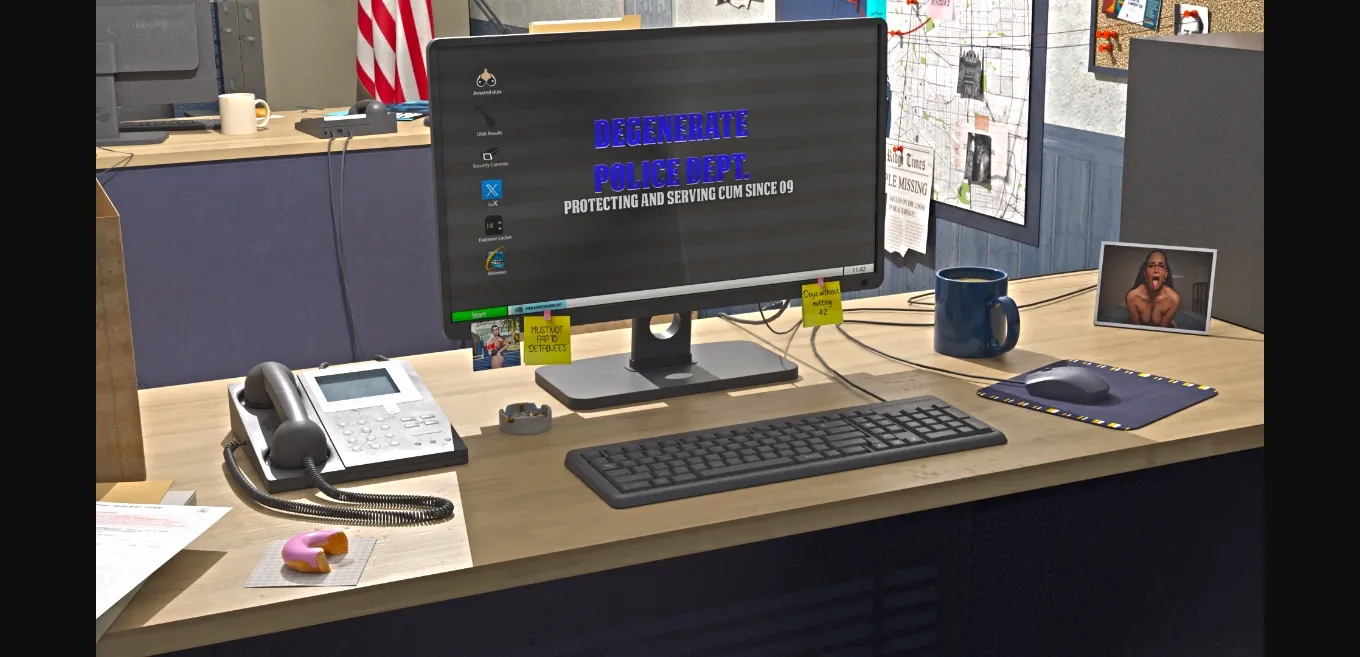 A murder has been committed and its down to detective Dick Magnum (The player) to solve the mystery at hand. Dick is a part of the Degenerate Police Dept. Known for it’s morally ambiguous stance when it comes to actually getting any policing done and instead favouring just getting laid. Dick however a cop fallen on hard times is here to be a change for the good… He will not lose who he is and his sense of justice for some tits and ass right?
