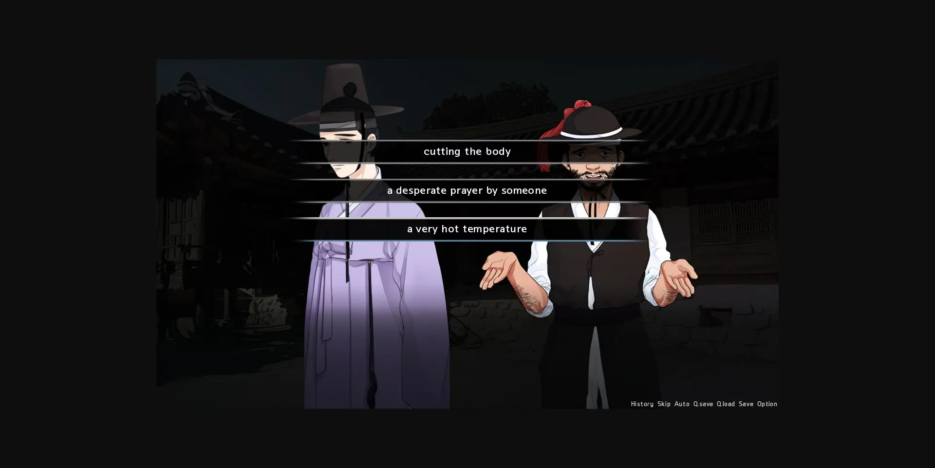 Welcome to the detective agency in old Seoul. This visual novel provides unique mystery and lesbian romance. Players can choose which one of 4 female characters will be the closest to the main character, "Heesoo." Some of your choices might lead you to a dark and dangerous path.