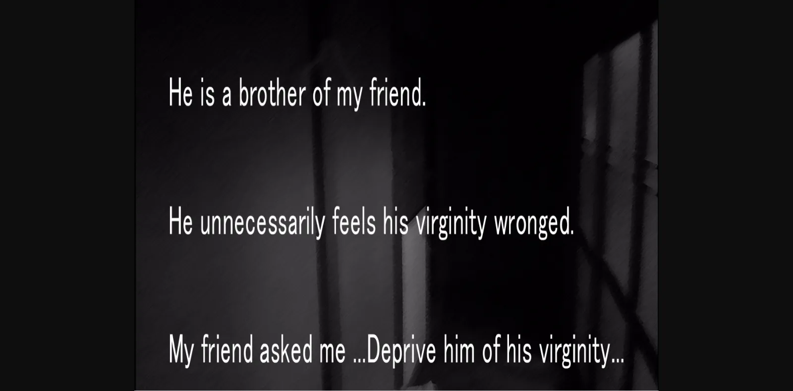 For men who have a fetish of being humiliated by tall, big woman. The game story is that big woman deprives small guy of virginity. Images are animated. How to play is so simple. Seek a clickable point and click it. Love scenes are very very very fantastic and erotic. Perhaps, you can not imagine those love scenes. Ha ha ha! Big tits and butt press you!