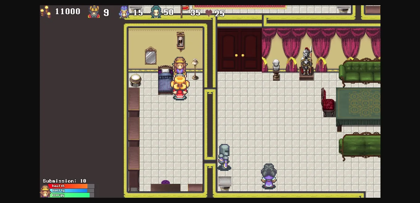 You play as a human princess that wants to become queen. Your goal is to politically maneuver your way to political dominance. Through fortunate circumstances, you also have the princess of elves as your prisoner. If you train her to be your loyal slave, you may be able to use her to further your political ambitions. A bulk of the gameplay is founded on reading text and making choices like a VN. There are elements of managing and training your slave as well.