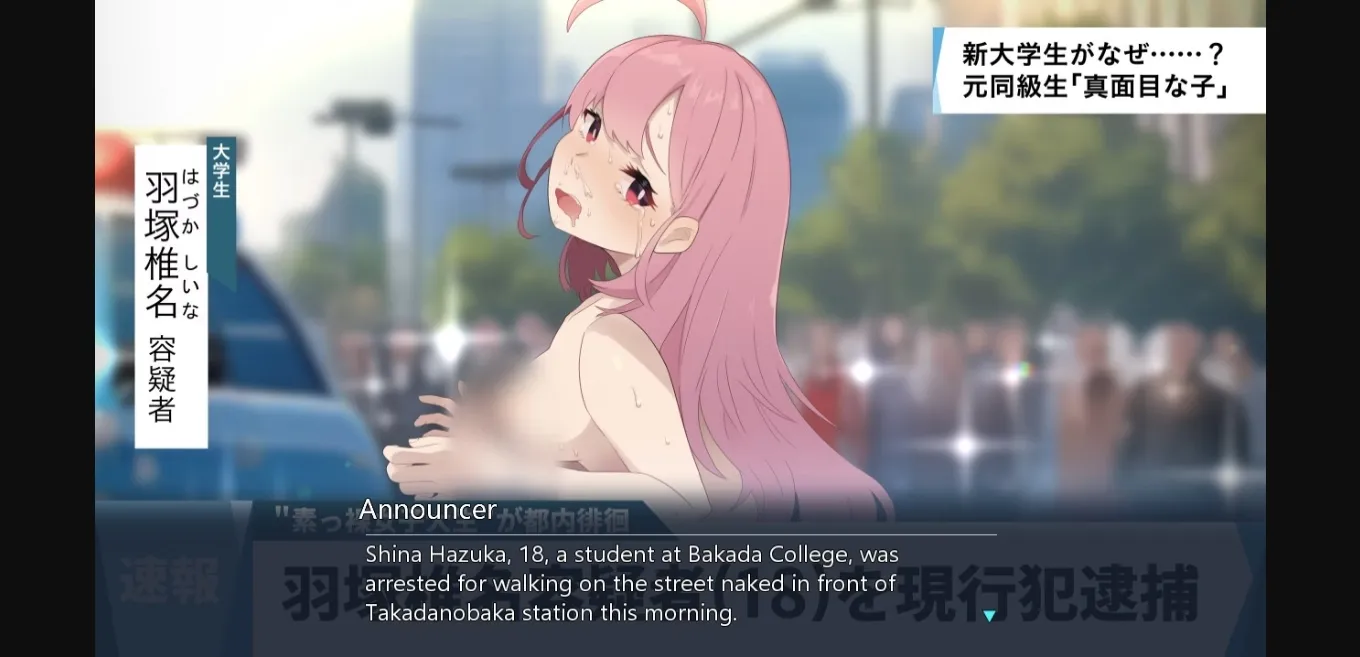 When she wakes up in the morning, she finds her lying completely NAKED in the middle of the city… The day after a welcome party, 18-year-old new first-year university student Hazuka, Shina wakes up completely naked on the street. If she is found in public, she will be exposed… If found out of the public eye, she becomes a comfort… The 3D NAKED stealth action game has begun: ……
