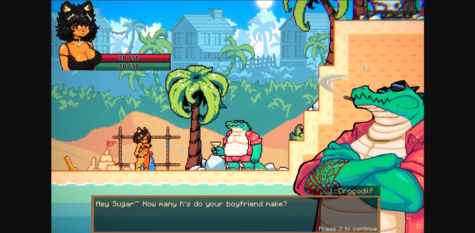 - Minor changes to beach location – Laid out the base for the changing scene, we’ll have it properly sketched out by the next update. Added a small dialogue to the first croc encounter, to introduce him in a similar manner to Wolfie. There is also a little area where you can encounter a new bunny enemy.