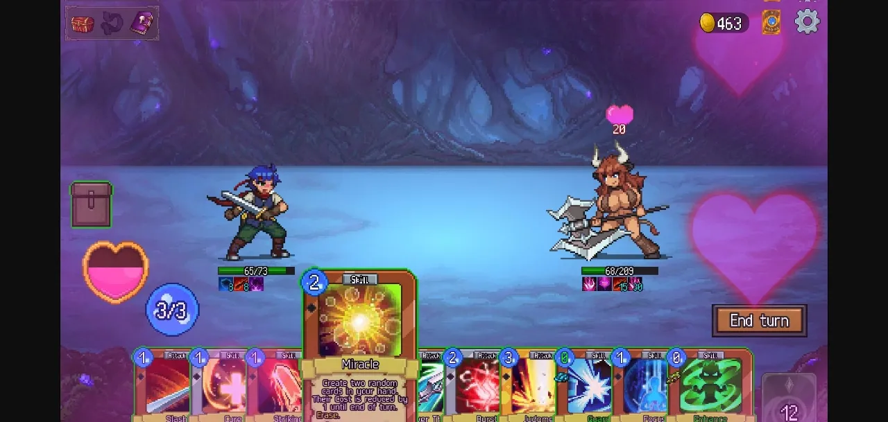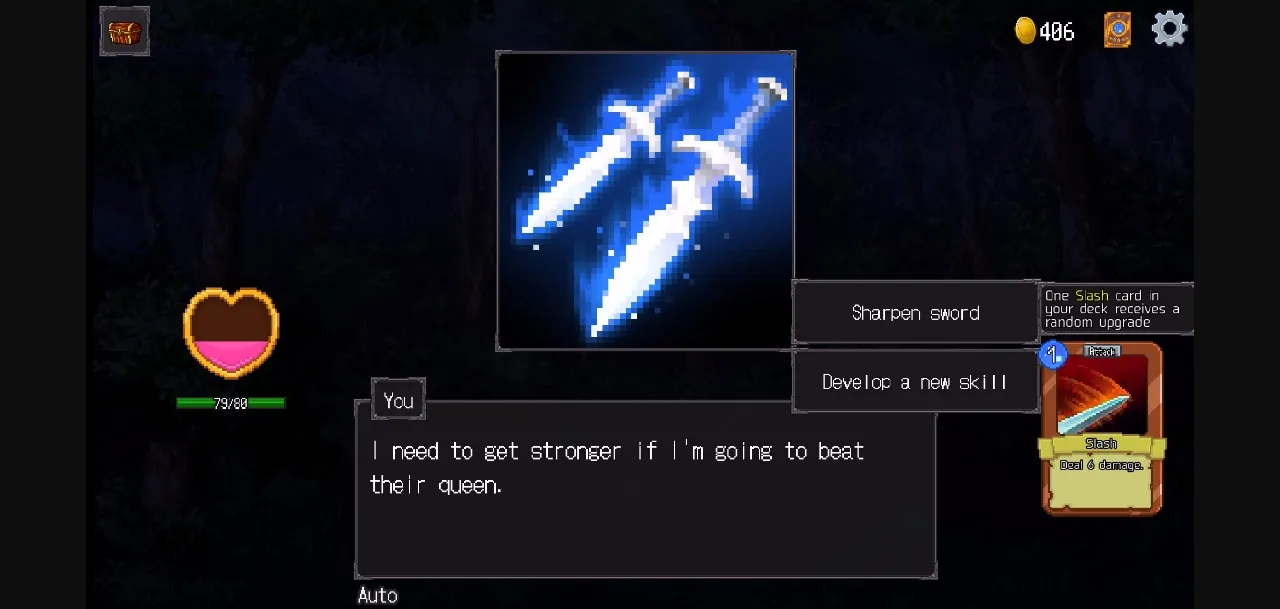 This is a roguelike deckbuilder in which you use cards to select your actions in combat. Cards can deal damage, block attacks, and more, and using them wisely is the key to victory. Gain new cards through random events and by purchasing them in the shop to power up your deck. Formulate your own unique strategy to take on wave after wave of powerful foes!