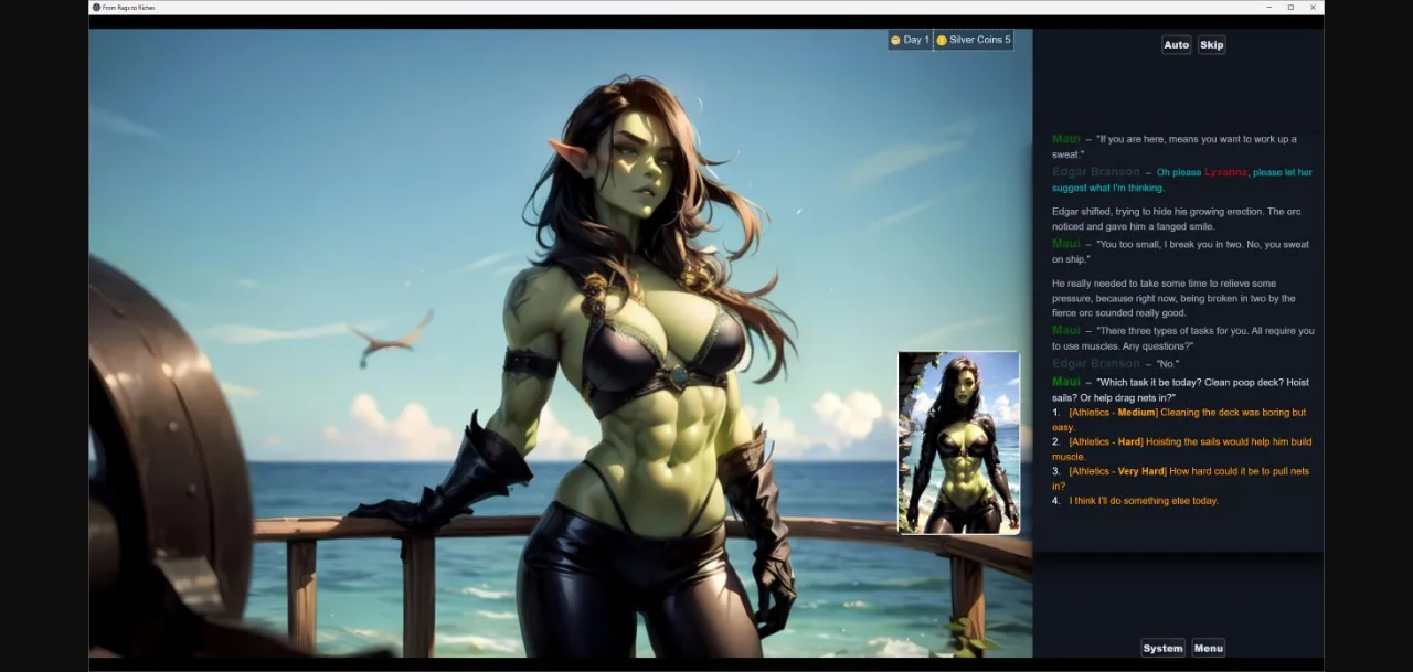 The game has a few interesting mechanics. Throughout the story you get to upgrade Edgar’s roguish skills as well as sexual abilities. You then get to use these to handle challenges before you and progress throughout the story. Furthermore, later in the game you get to establish multiple business of the.. let us say, catering to lecherous citizens of Tego, the main city. You must maintain, grow and upgrade these businesses with eye on your income and expenses as well as your business’ reputation. Lastly you must hire and find girls to work your fine establishments.