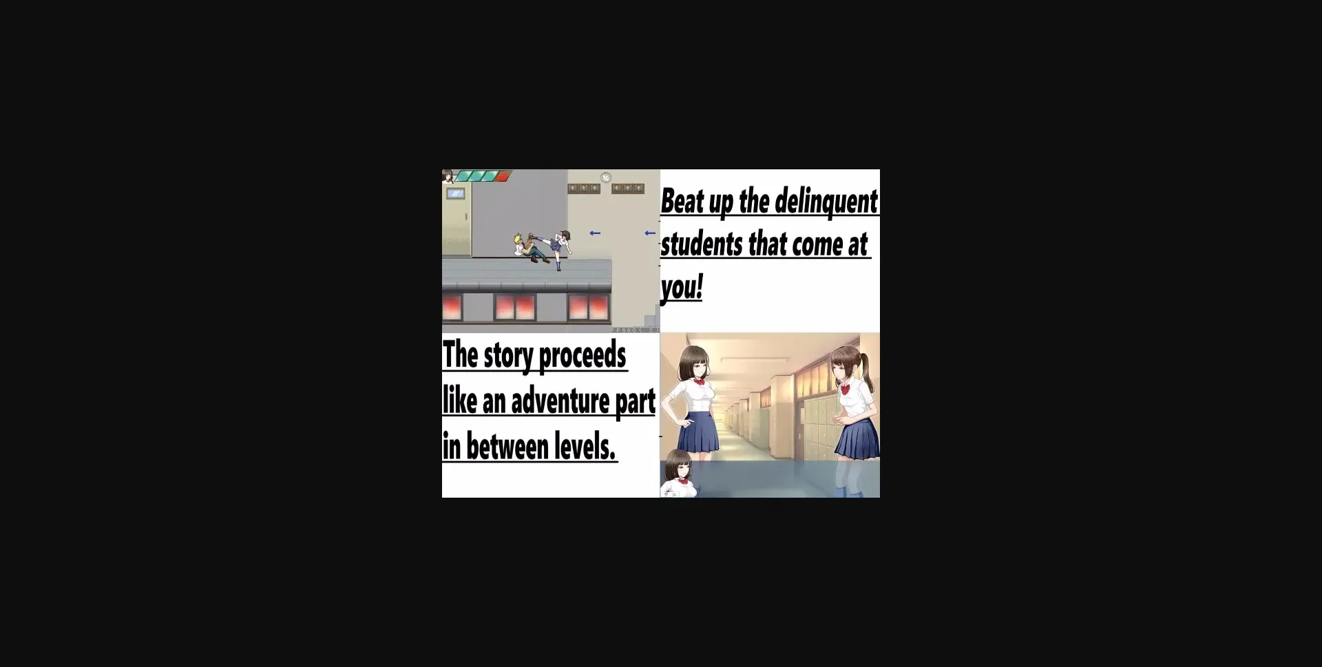2d game, 2dcg, anal sex, animated, big ass, big tits, combat, creampie, female protagonist, groping, group sex, multiple penetration, oral sex, platformer, rape, school setting, vaginal sex, censored, japanese game, side-scroller