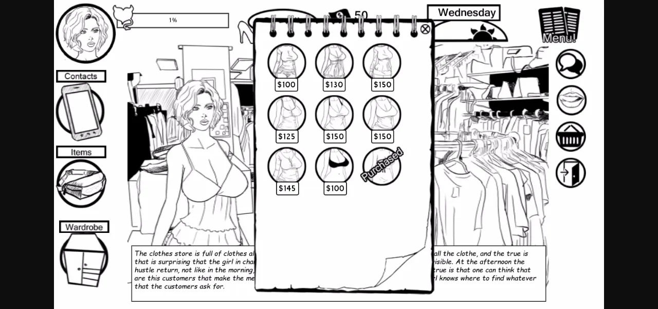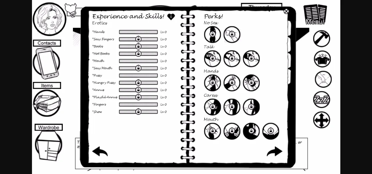 • First part of the first story quest. This add, a new location (Mikela’s House), two characters, and some scenes, introduction, a couple of erotic scenes and a bunch of dialogue. To access to this part of the quest you need to have two lust hearts and then sleep, you will see a dream and the new location will be available with all the options on it. I won’t spoil what is going on in the quest, but isn’t finished, so some options aren’t available for now (will come in the next update).