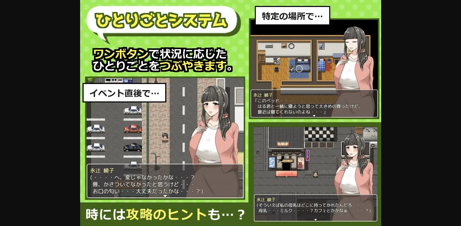 2D game, 2DCG, Adventure, Ahegao, Anal sex, Bestiality, Big tits, Censored, Corruption, Cosplay, Creampie, Exhibitionism, Female domination, Female protagonist, Groping, Humiliation, Internal view, Japanese game, Lactation, Lesbian, Male domination, Masturbation, Milf, Multiple endings, Oral sex, Prostitution , Rpg, Sandbox, Scat, Sex toys, Stripping, Urination, Vaginal sex