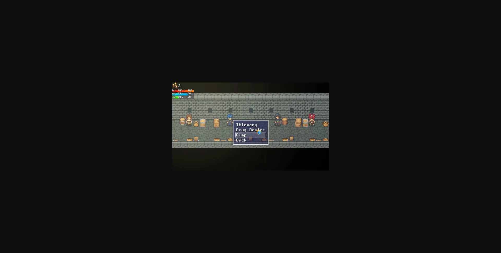 2D Game, 2DCG, Anal sex, Big tits, Drugs, Female domination, Footjob, Male domination, Male protagonist, Monster girl, Oral sex, Prostitution, Rpg, Sandbox, Spanking, Titfuck, Vaginal sex,