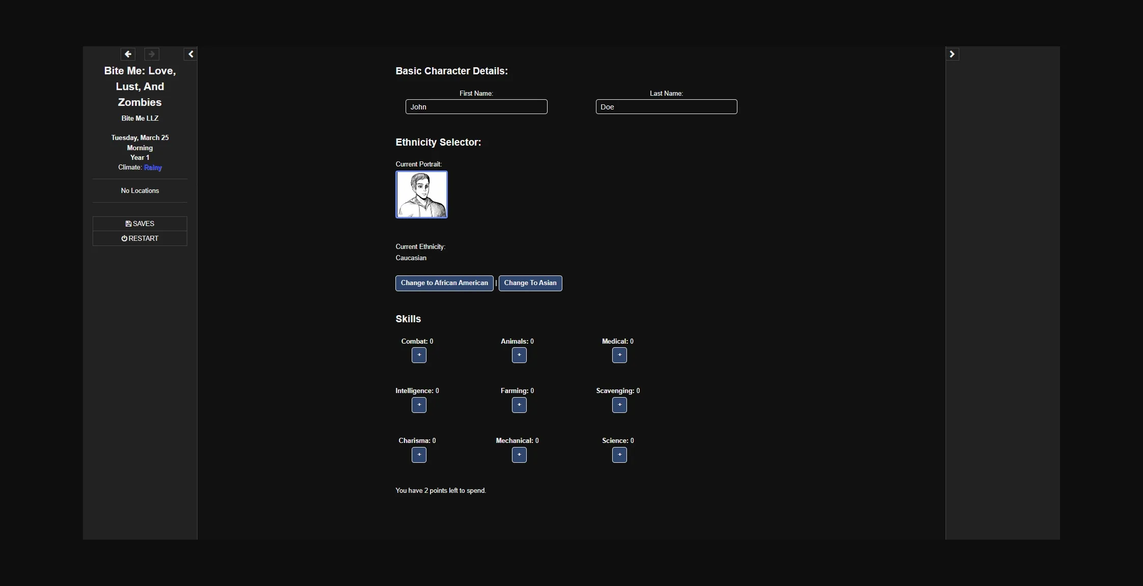 - Added a new feature to the end day button where your infection will spread by 1 each night as long as you have at least one point of infection prior. If you are non infected, you will automatically regain one health at the end of each day instead.