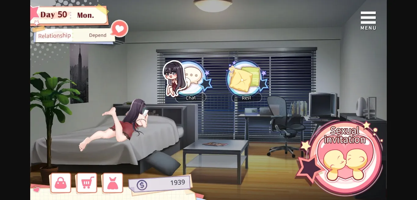 During the days when you live with Snow, you can choose to “Watch TV,” “Chat with Snow,” or “Go out early in the morning” (increase money) on the mornings of workdays. In the evening, you can choose to “Chat” with Snow or to “Have sex.” You can also “Shop online” to buy various clothes and items, which not only allows Snow to "Dress up" but also allows you to start various roleplay scenarios and enjoy your happy days with Snow.On Sundays, you can go on trips with Snow. Every choice you make will have an impact on the final outcome of your relationship with her.