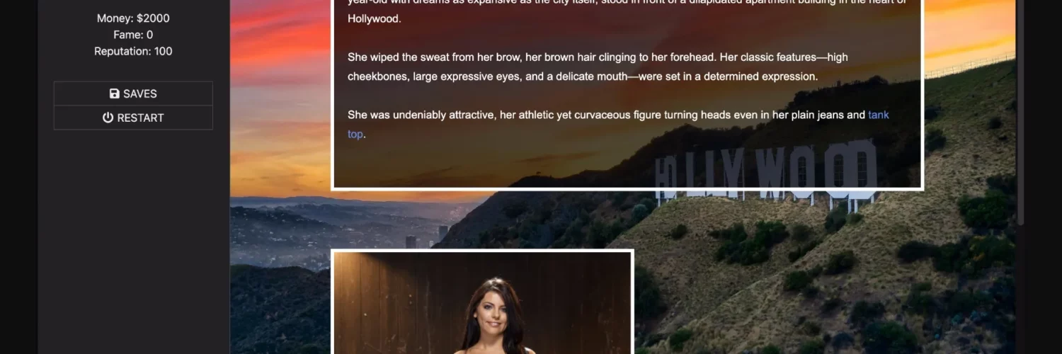 Follow Jennifer on her way to Hollywood Fame. Make choices and tackle obstacles along the way to the top of the chain. Would she end up as the starlet she desires or end up with a career that ruins her innocence?
