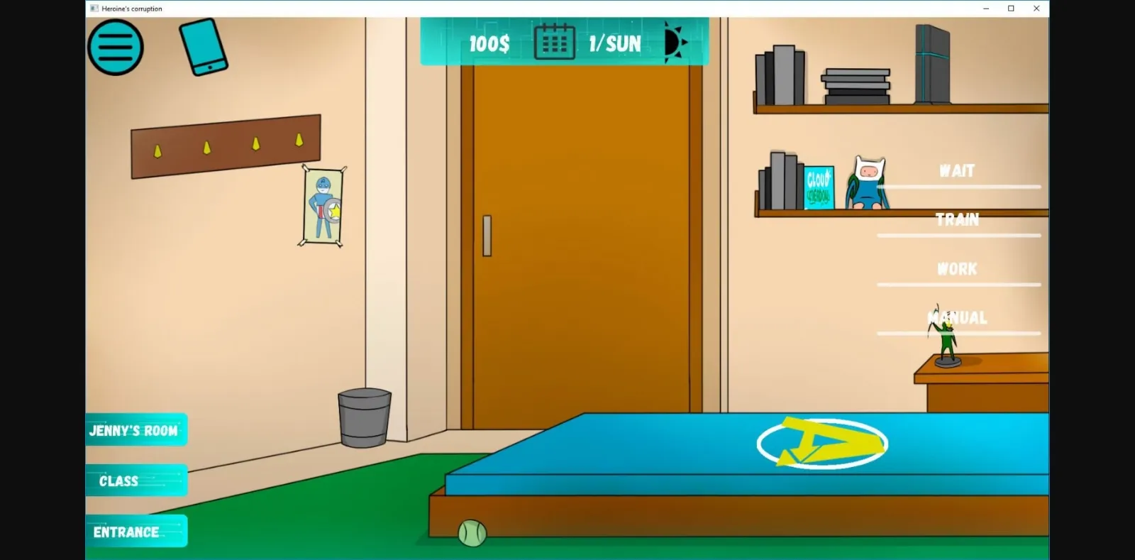 – I reworked wear menu & magic menu. Now you have one additional slot for Jenny custom wear. So, I need just draw more clothes for her Magic buttons I endured to "action" menu, where you’ll have another specific actions for Jenny – give her a gift, buy a clothes and etc.
