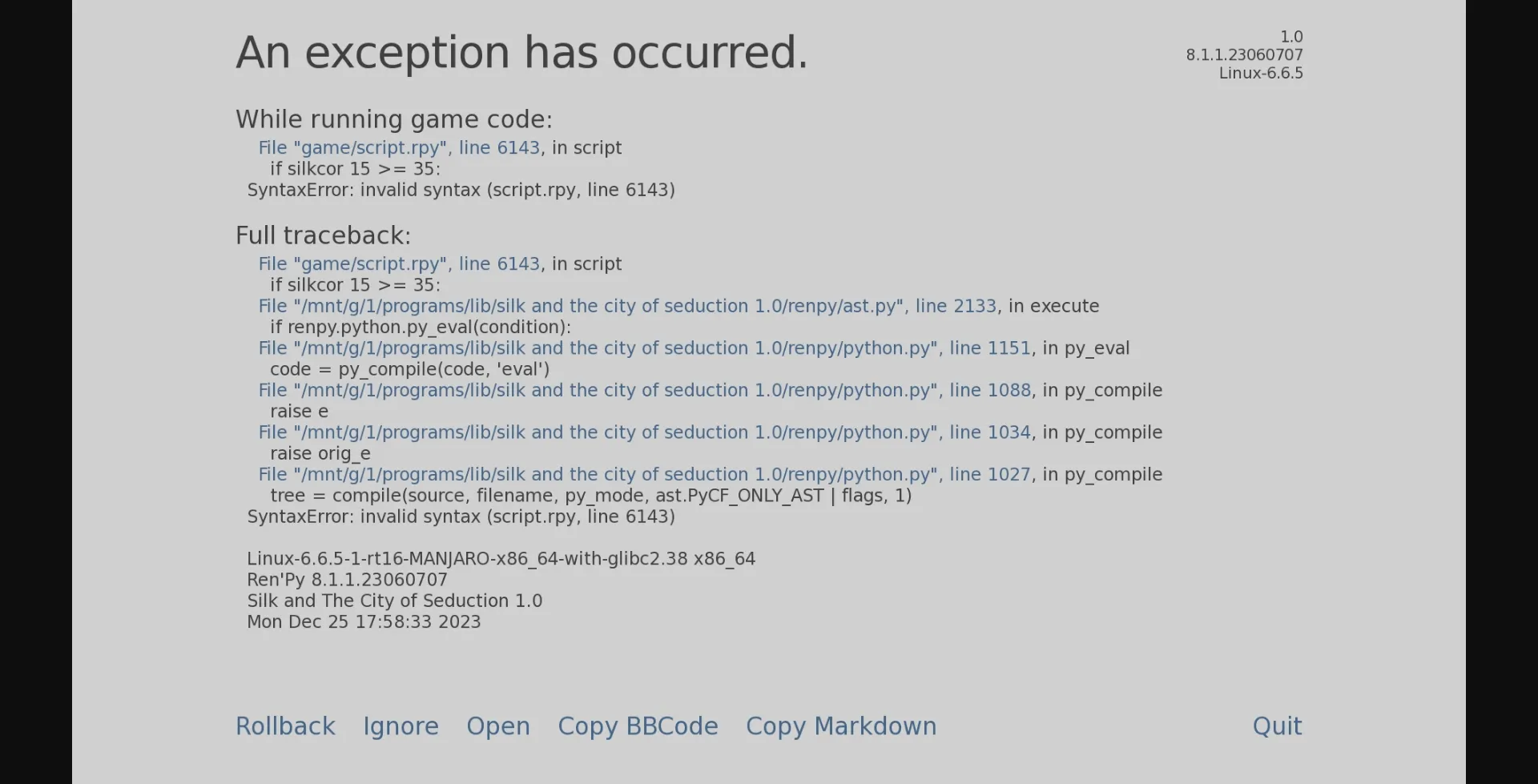– Fixed the tailor sometimes sending the player to the front desk event. Now, Silk will appropriately remark that she has no reason to go there just yet.