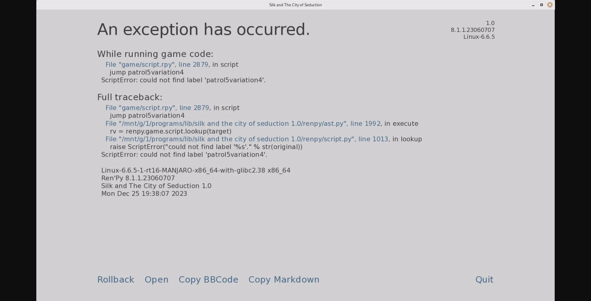 • The bug that would force quit the player to the menu when loading into the home or viewing scenes that were also found in the gallery should now be fixed