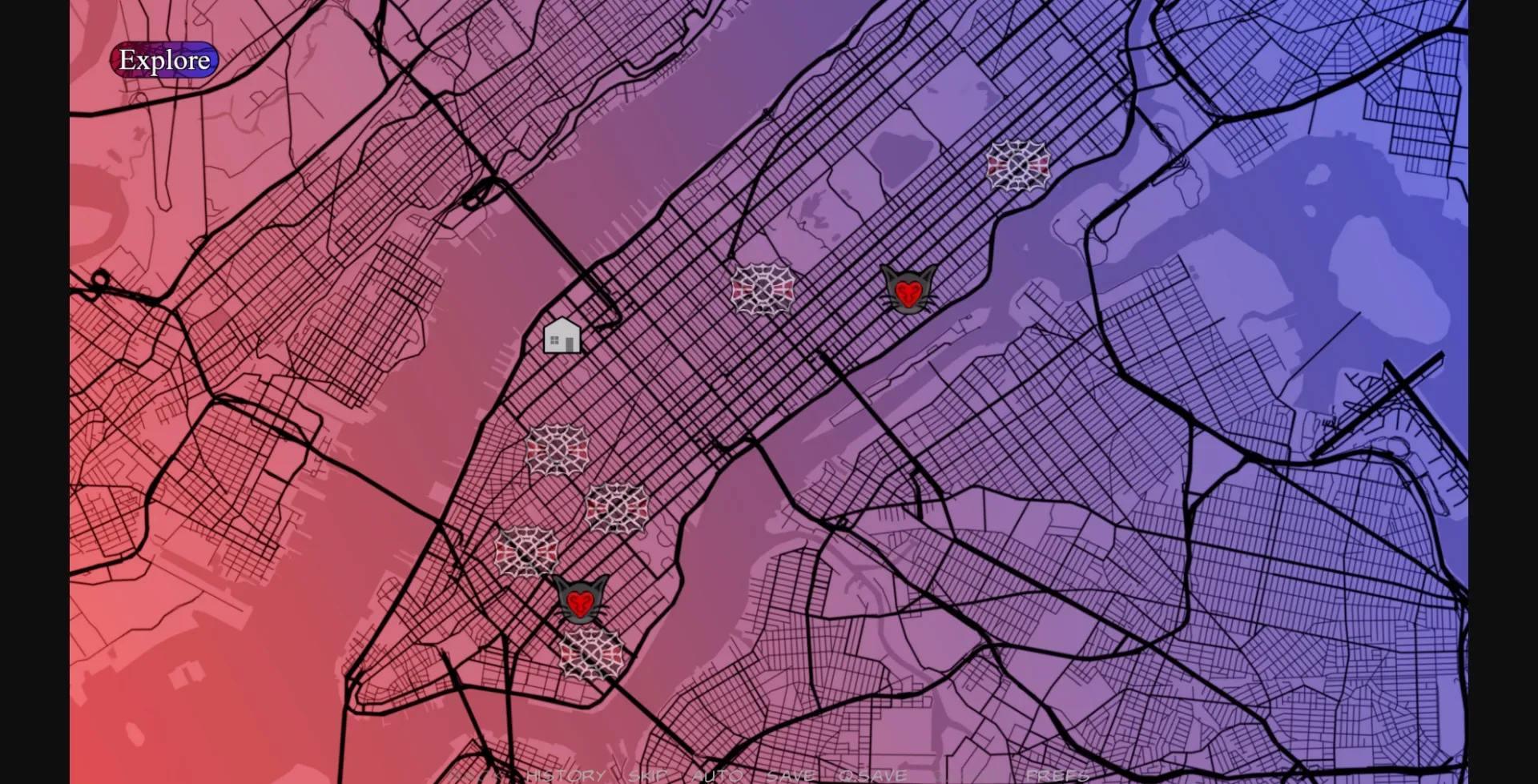 – In my war agasinst unnecessary menus, I have added two new maps: Patrol Map: Silk can explore and initiate patrols from this map. I plan to add the pursuits to this map too, but they are currently in their own menu that appears before the map. (Accessed by selecting Superhero Work in her room.) Civilian Map: Cindy can go on dates, go to work, and go to school through this map. (Accessed by selecting Civilian Tasks in her room.)