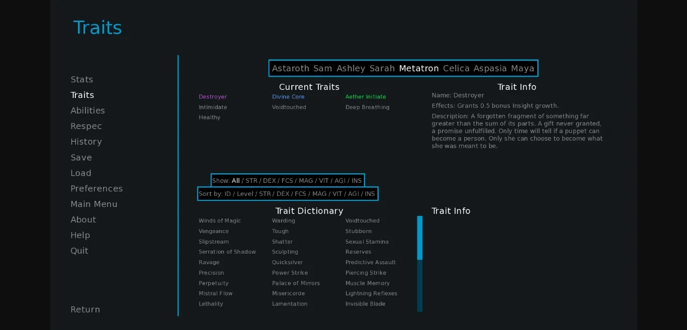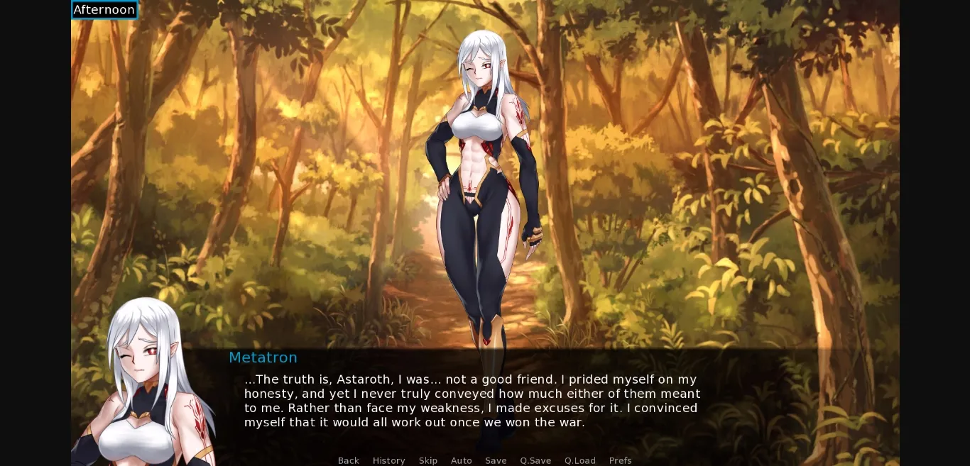 • Siofra gets 2, 4, and 6 trust scenes, all of them very meaty and deeply philosophical. She has a lot more going on than ‘smug goofy forest lady’ and is happy to challenge the MC as well as be challenged by him. I meant that intellectually, but she would probably also be into ranked competitive sex.