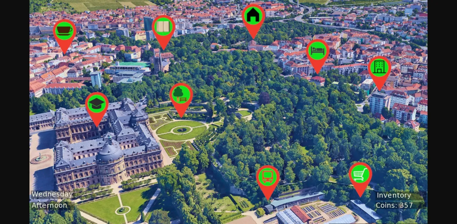 While doing so he meets different characters and can do different stuff like a balloon tour or a walk in the park, visit the local church or a nice drink at the inn. There are several random quests and some scripted story-plots.