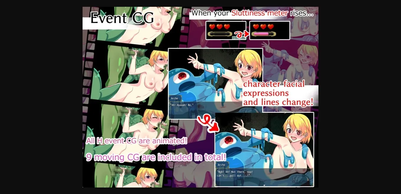 Diabolical ero traps, and horny monsters await her.
