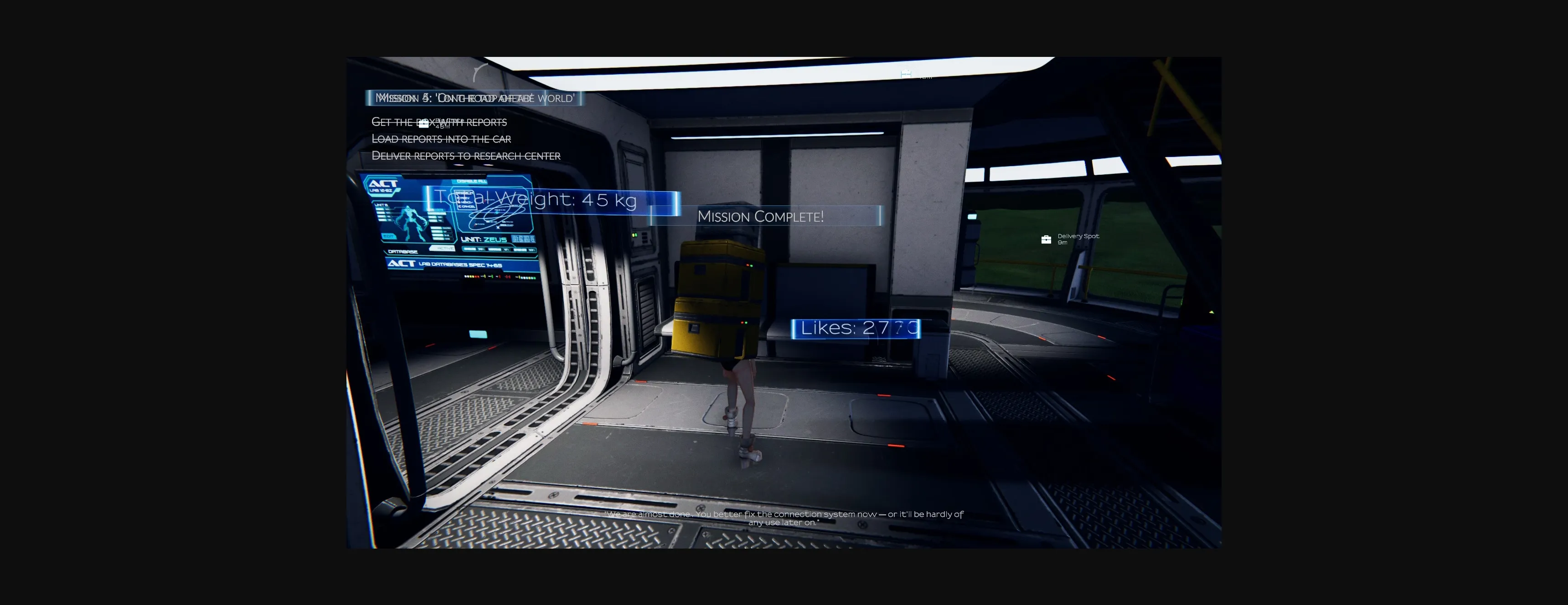 You are a Delivery Agent. Your goal is to deliver packages save & sound to our bases, taking care of our people’s needs. Dont’ worry, you’ll be awarded accordingly.