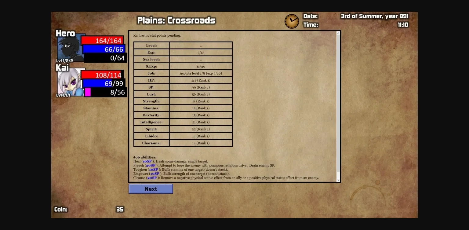 Text based, Male protagonist, Female protagonist, Adventure, Fantasy, Female domination, Male domination, Furry, Anal sex, Oral sex, Vaginal sex, Group sex, Harem, Lactation, Gay, Lesbian, Mind break, Pregnancy, Tentacles, Titfuck, Futa/trans, Monster, Monster girl, Combat, Turn based combat, Drugs