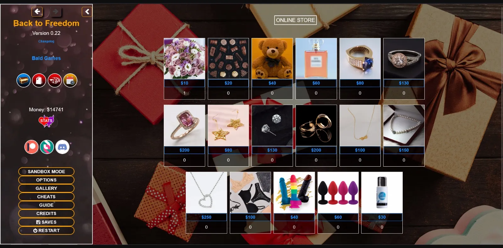 – New system: Online Store and Inventory. After a certain moment of the game, you will have an online store available in the sidebar. This store contains gifts for sale to be given to characters at certain times. The window also serves as an inventory showing how many of each item you currently have.
